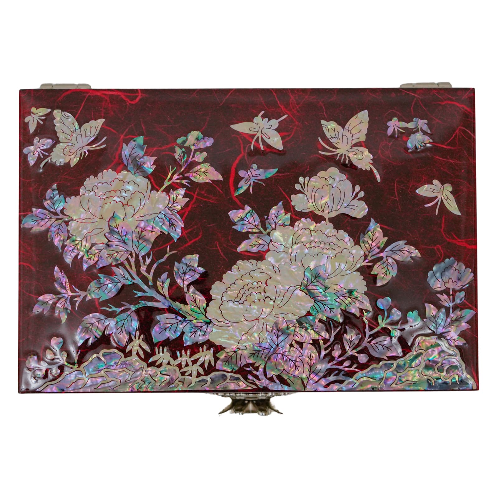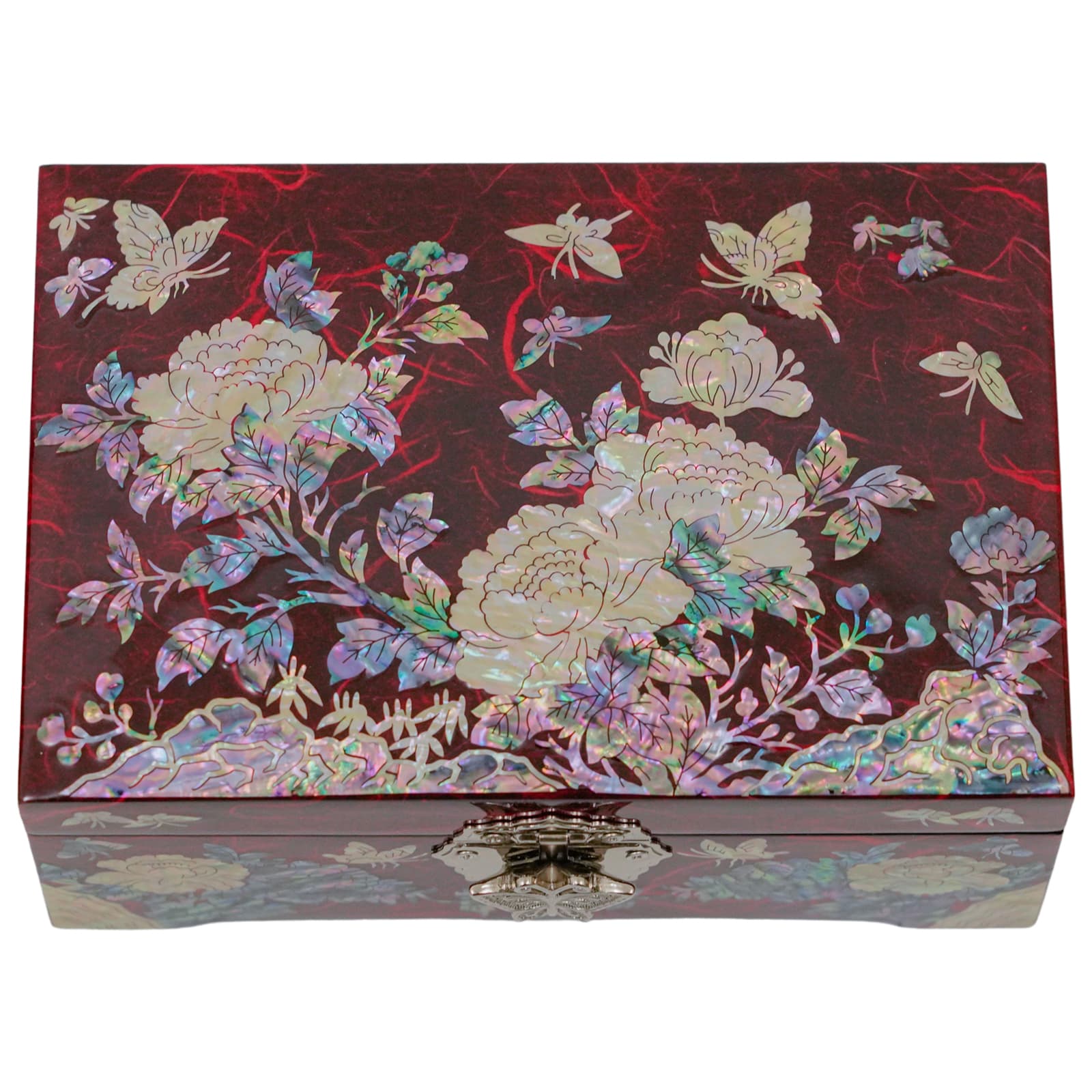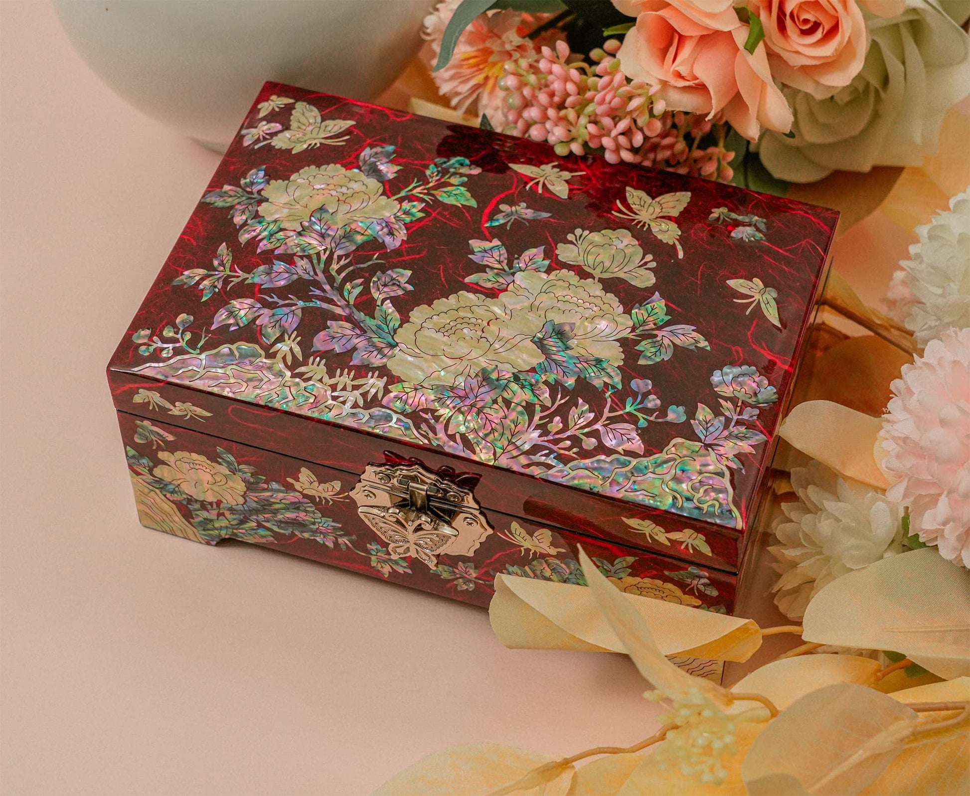 Peony with Butterflies Large Red Jewelry Box