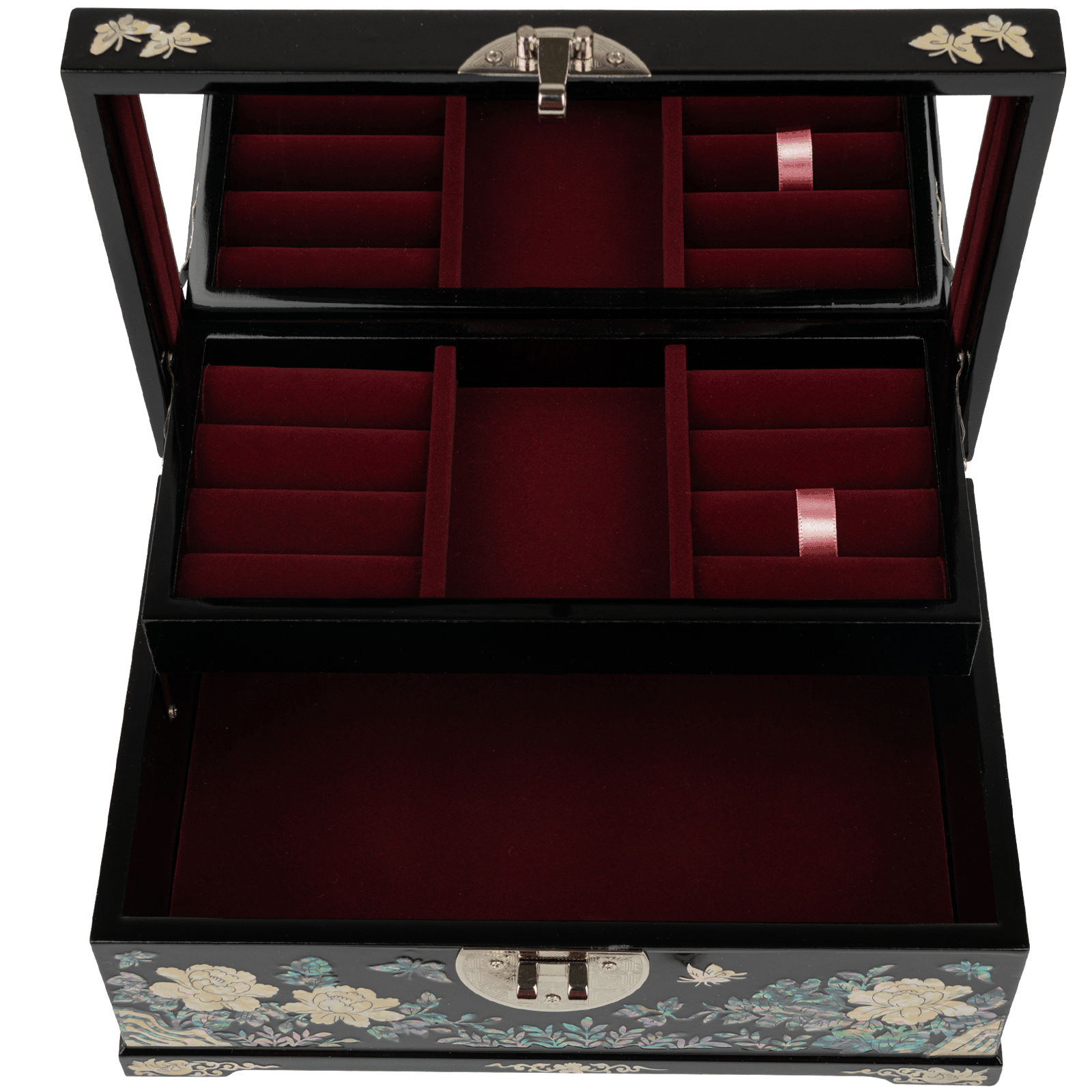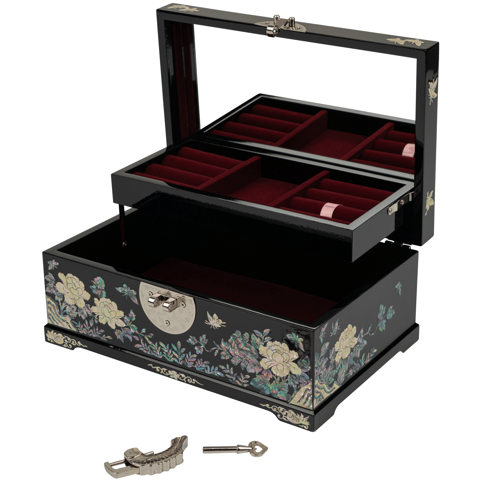 The Mother of Pearl Wooden Large Lockable Jewelry Organizer Box With Key is perfect if your partner is looking for a way to expand her current Jewelry collection without taking up too much room. The interior features deep burgundy velvet coating every square inch of the box. By resting your Jewelry in this soft material, it can be preserved in its pristine, scratch-resistant state for longer.