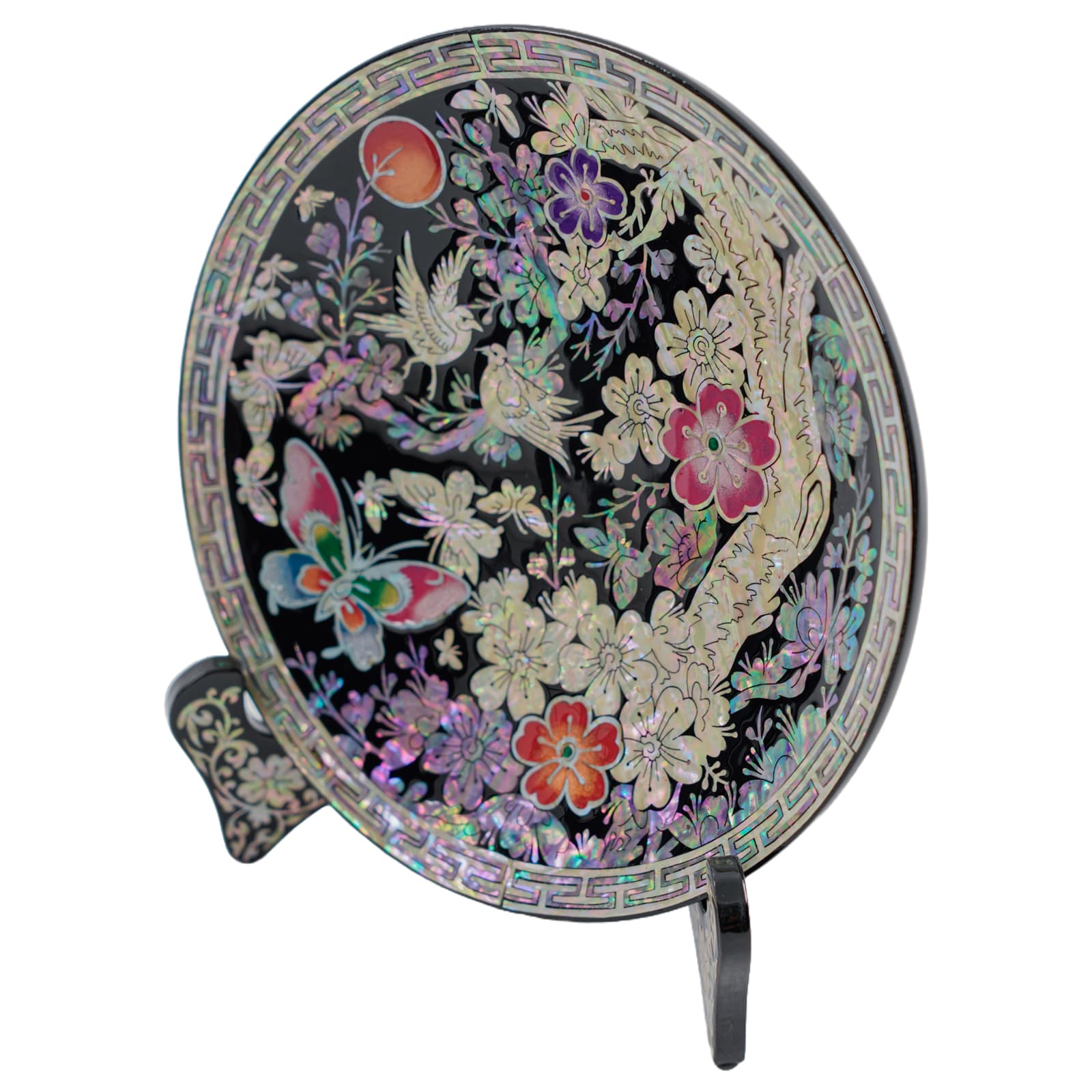 Korean Mother-of-Pearl Inlay Decorative Plate - Floral and Bird Design