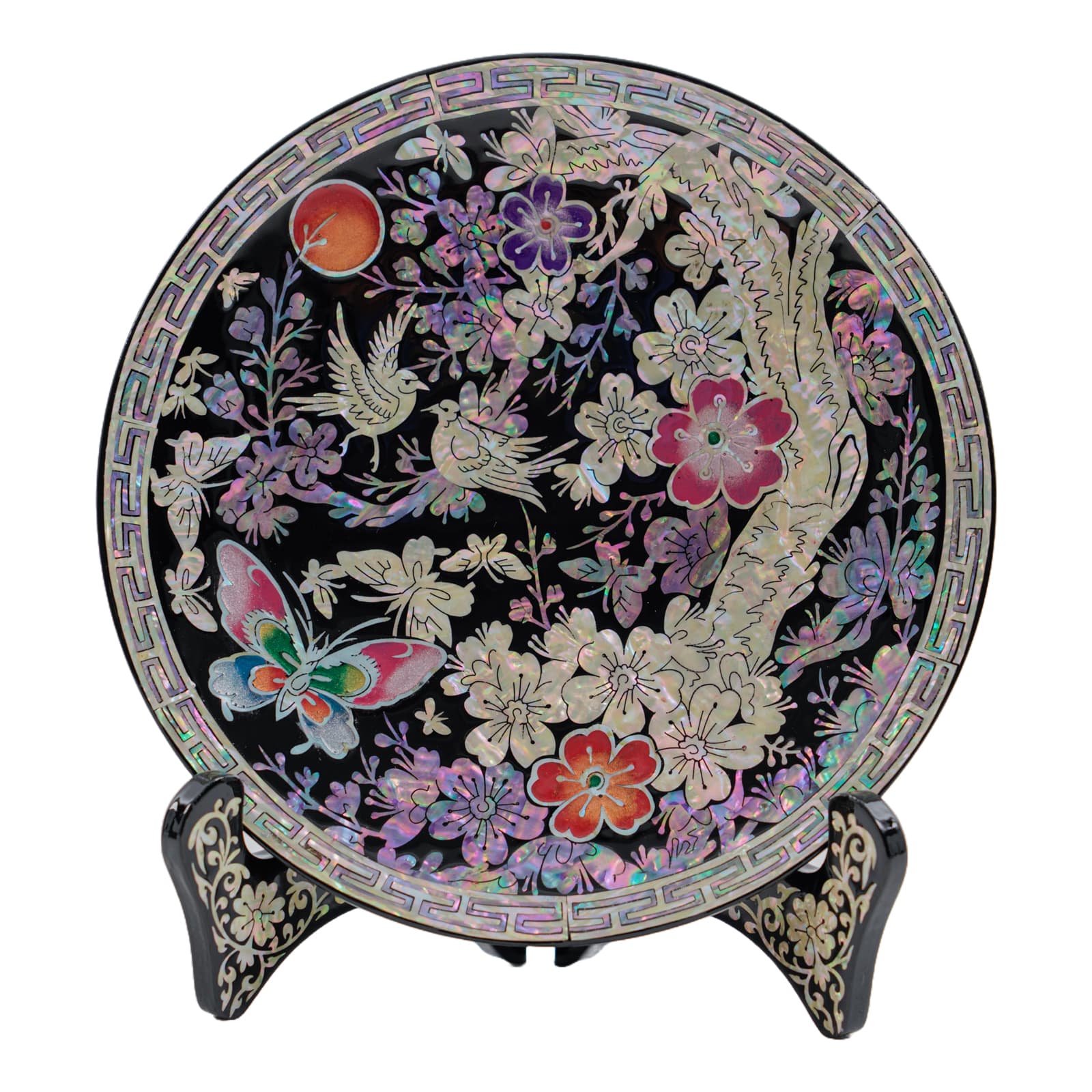 Korean Mother-of-Pearl Inlay Decorative Plate - Floral and Bird Design
