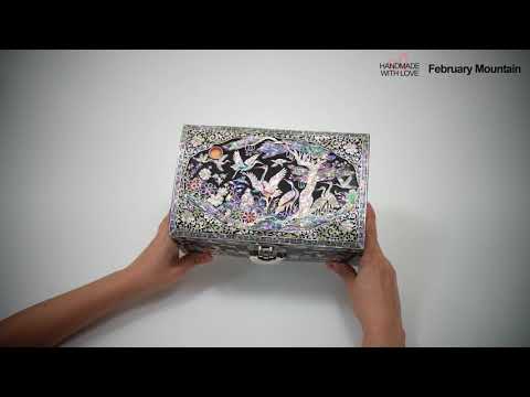 Discover the perfect gift for her with our unique lockable jewelry box. Adorned with traditional Korean mother-of-pearl inlay, featuring cranes and a lush floral design. This exquisite piece not only organizes jewelry but also adds a touch of sophistication to any dressing table. Ideal for anniversaries, birthdays, or any special occasion.