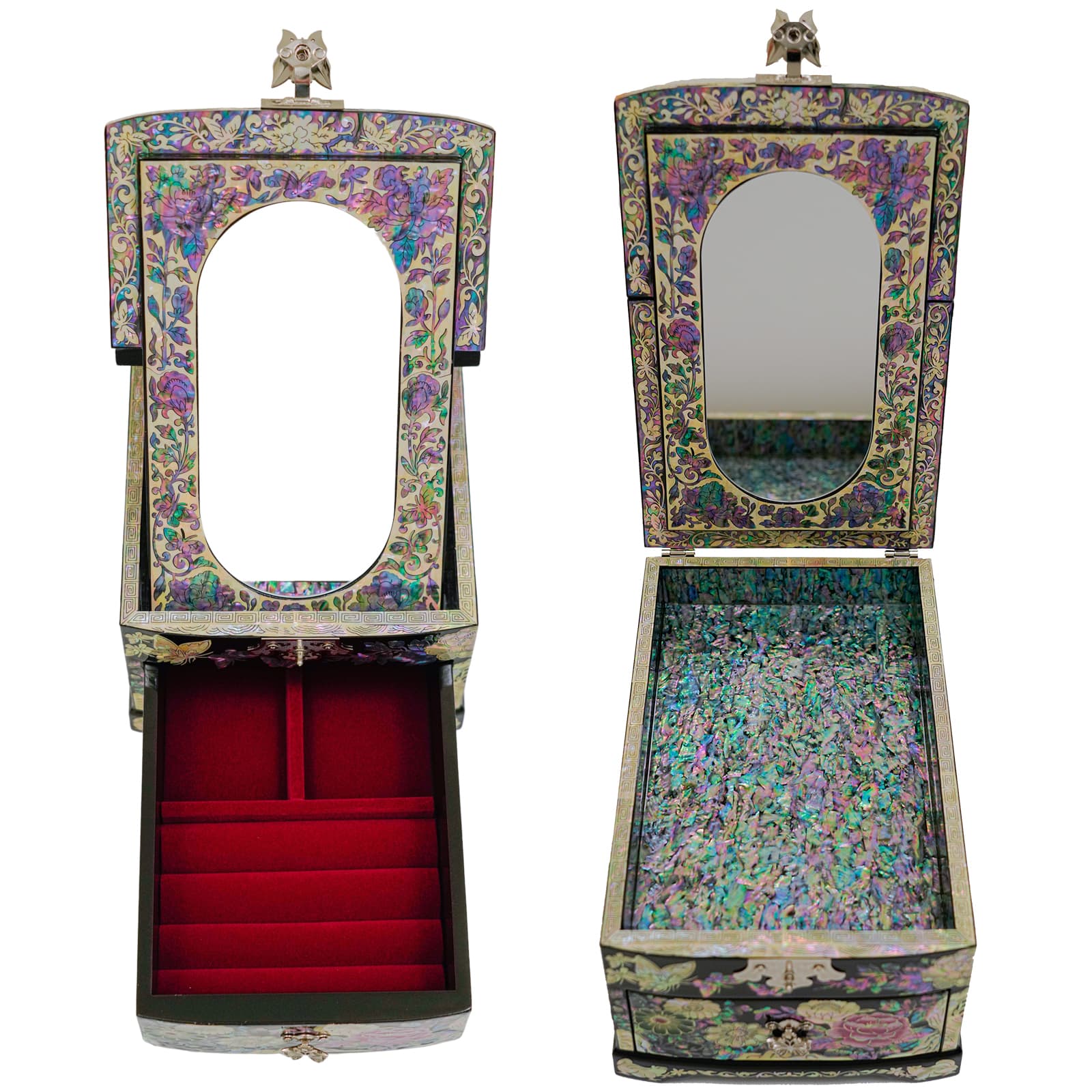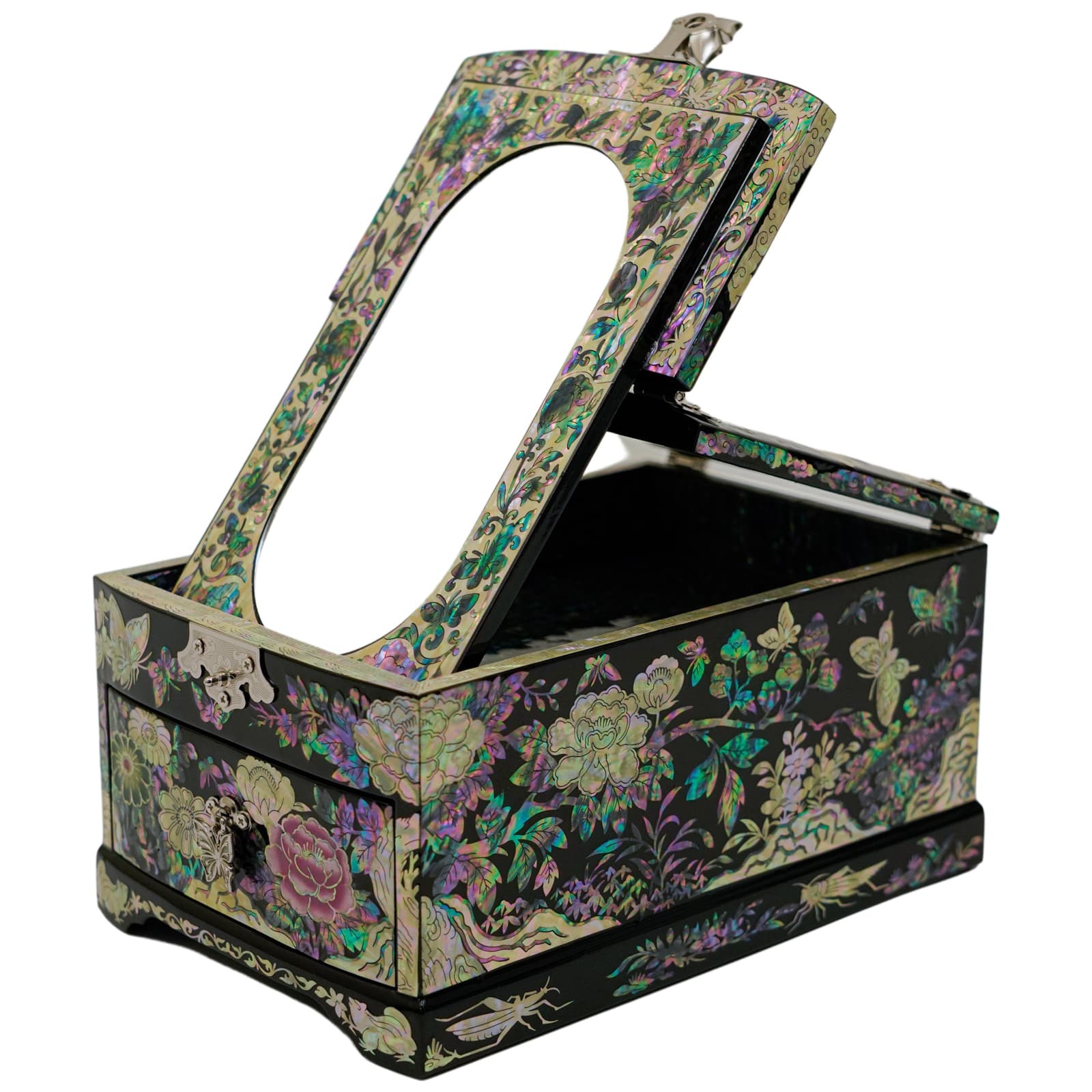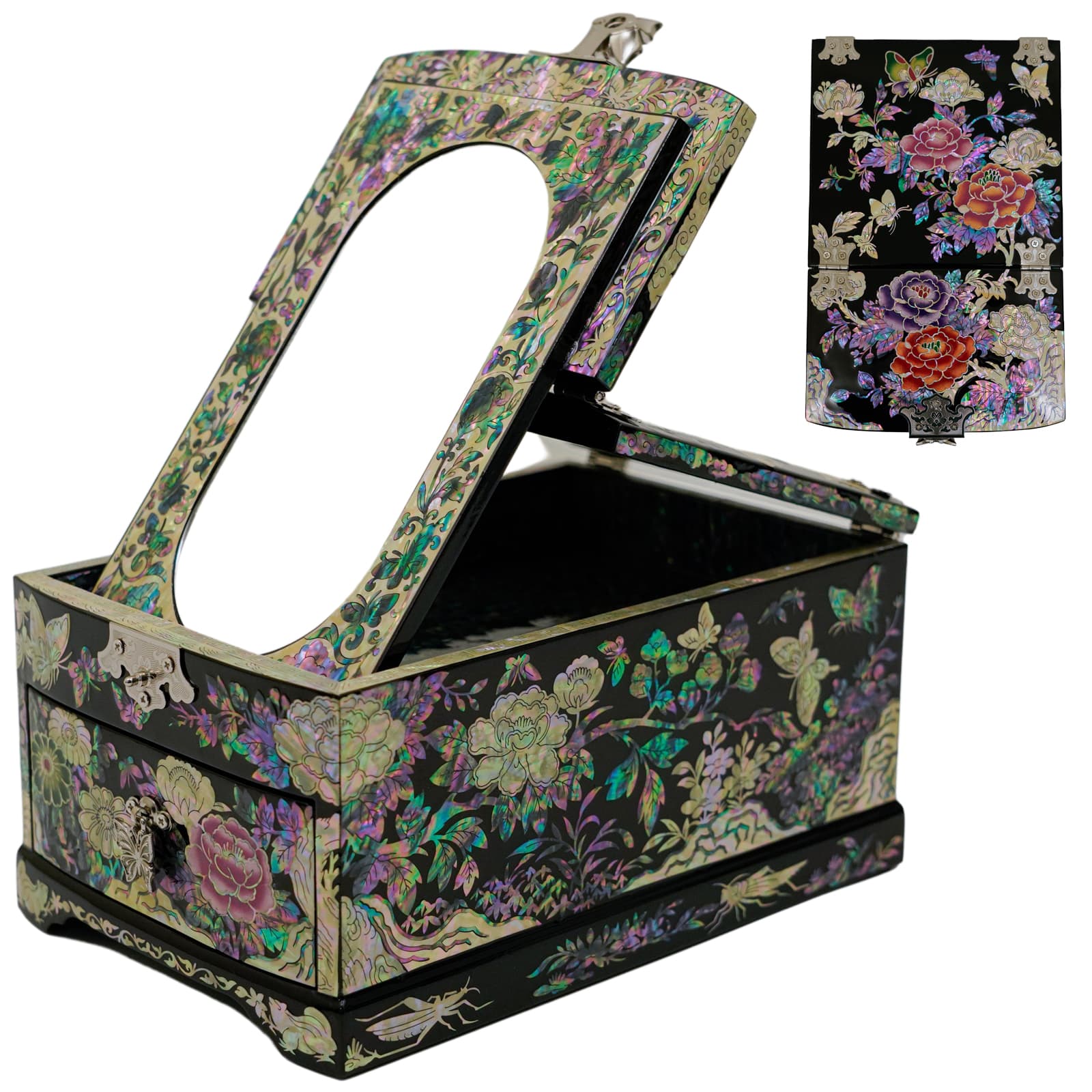 From its eye-catching mirror to its gorgeous mother-of-pearl design, this traditional Korean jewelry box features so much style and beauty.